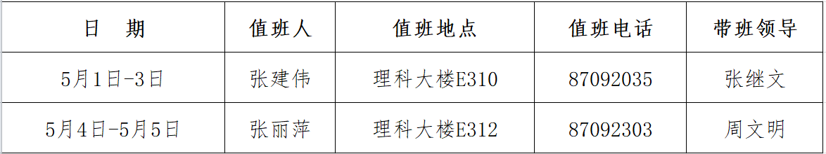 五一假期值班表