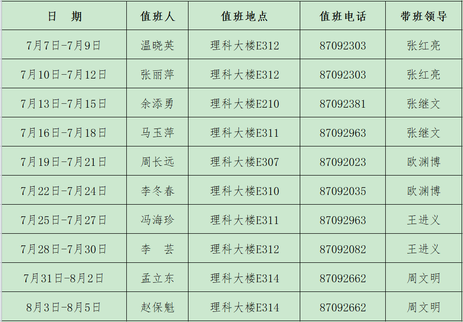海棠书屋 2021年暑假值班安排