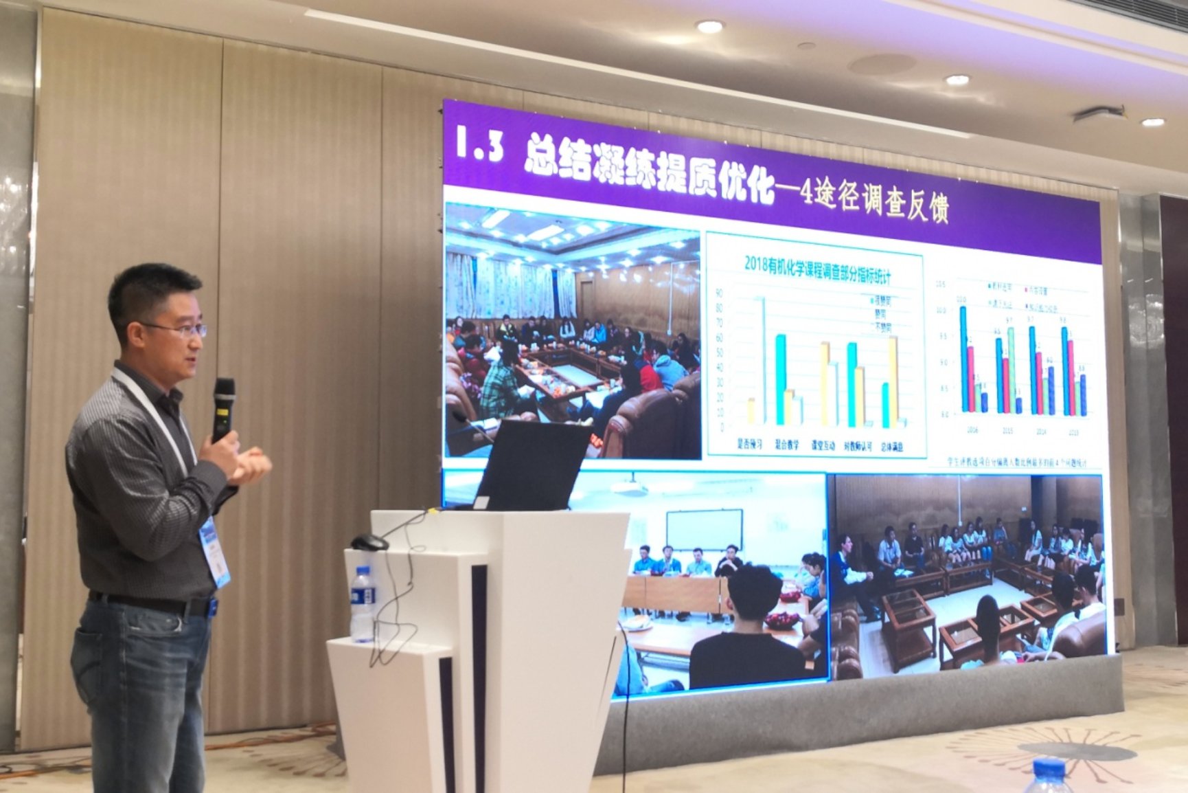 这是我校基础化学团队首次在这样的舞台展示有机化学教学改革的进展,引起了多位参会教师的积极提问及热烈反响,为继续开展教学提质创新的内涵发展提供了动力。高等化学教育分会设置有化学一流专业建设、化学相关新工科建设、金课建设等共21个口头报告。
