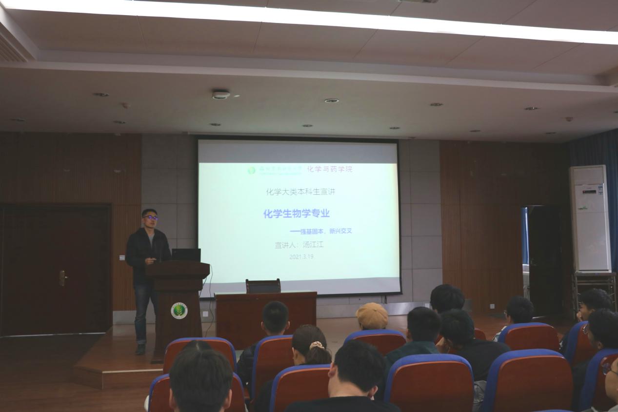 会上,教学副院长周文明教授和化学生物学系主任汤江江副教授分别对应用化学专业和化学生物学专业的培养目标、毕业要求、课程体系、专业特色、师资力量、保研考研及就业前景等做了详细介绍。宣讲会结束后,两位老师分别就同学们提出的专业发展方向、专业特色、课程设置、就业情况等问题做了耐心解答,并希望大家结合个人特点、兴趣和专业需求做出适合自己的选择,尽快明确目标、提前规划,让自己的大学生活更加充实、更有意义。