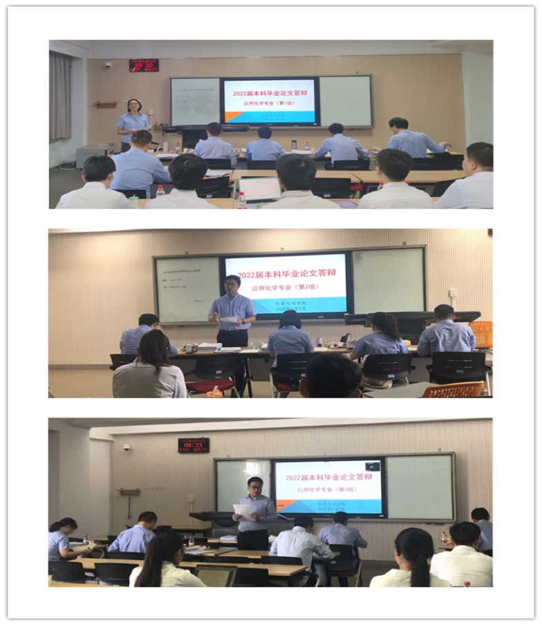 6月2日,海棠书屋 2018级应用化学、化学生物学专业113名同学(含3名创新海棠书屋 学生)分成6个小组在八号教学楼进行毕业答辩,其中7名同学采取线上答辩。