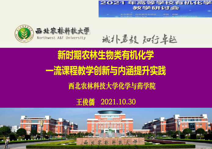 海棠书屋 有机化学教学团队负责人王俊儒教授应邀参加会议,并做了题为《新时期农林生物类有机化学一流课程教学创新与内涵提升实践》的专题报告。王俊儒教授在会上分析了新时期课程教学问题和对标重心迁移之后,重点介绍了农林生物类有机化学教学的“基础夯实-体系重构-内涵提质创新”的三段实践成就,在新四科背景下,面向学生入口问题和未来发展高要求,有机化学教学团队开展了预习前置、教学内容重心向分子应用后移、分子研讨、七类型思政融创案例切入、素质-能力-知识三维一体化构建、课内外结合、“有机化学+”多学科交叉分子资源拓展等一系列教学创新探索,强化了学生主动学习和即时学习(Just-in-Time learning)的策略运用,通过多态建模促共进,常态反馈增内涵,实现了课程教学质量的螺旋式提升。
