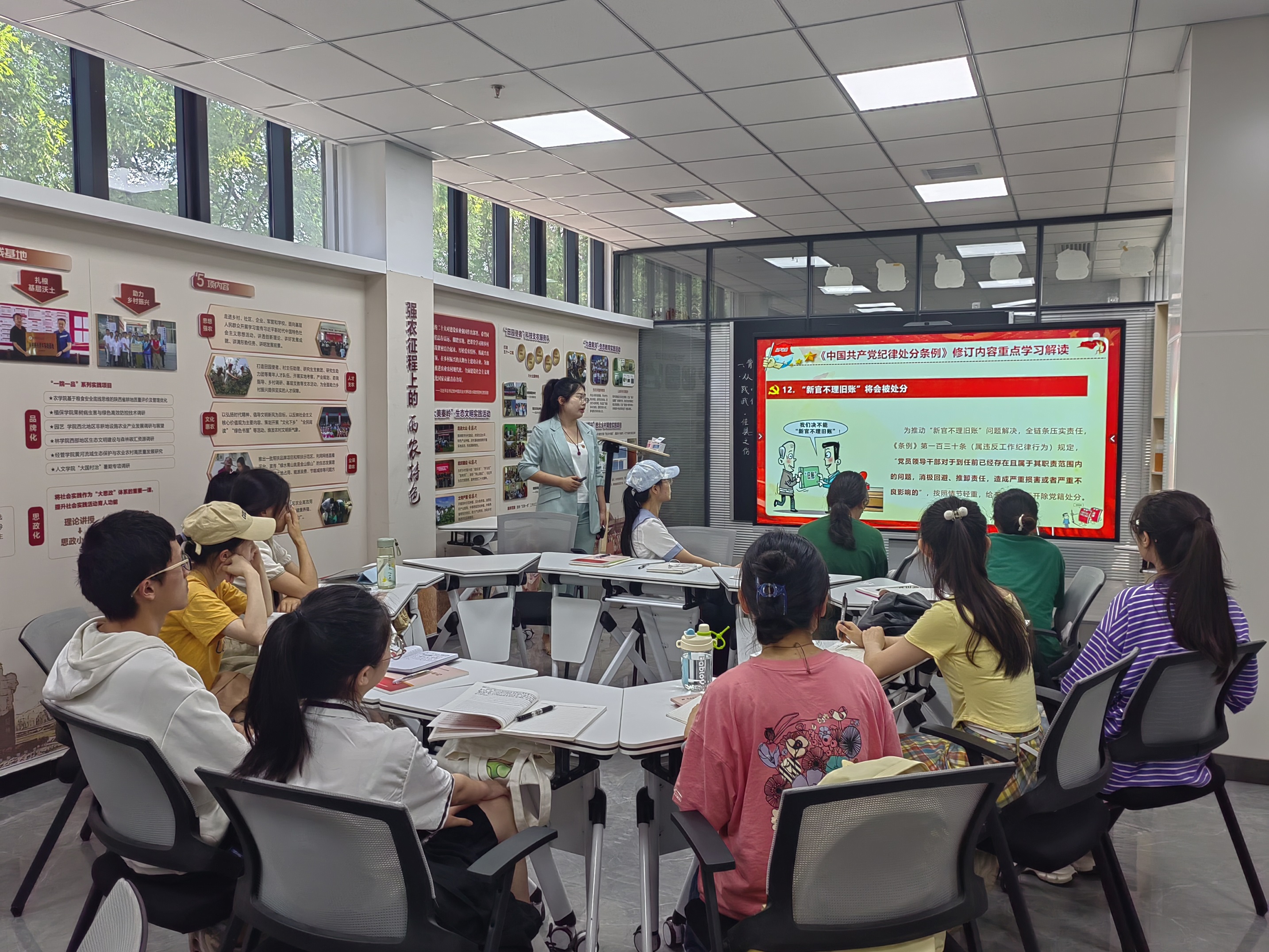 为深入学习贯彻习近平总书记关于党纪学习教育的重要讲话和重要指示精神,认真学习领会新修订的《中国共产党纪律处分条例》,教育引导全体党员同志学纪、知纪、明纪、守纪,5月22日下午,海棠书屋 本科生1支部于北校区一站式社区18-2活动室开展了一场生动的党纪学习教育主题党日活动,支部全体党员参与学习。